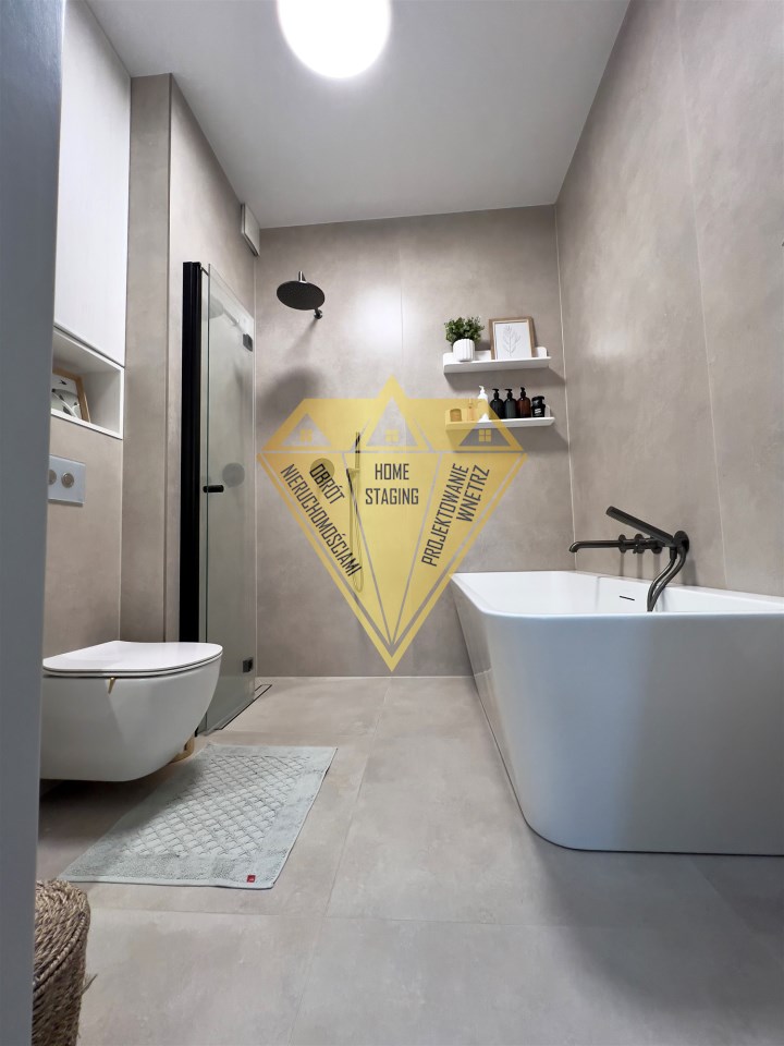 - Dwie łazienki – komfort, którego oczekuje wymagający klient. Główna łazienka: Przestronna, elegancka, rodzinna. Znajdziesz tu wannę i komfortowy prysznic, idealne zarówno na szybkie poranki, jak i wieczorny relaks. Druga łazienka Z WC i funkcjonalną umywalką – idealna dla gości i mieszkańców, podnosząca wygodę codziennego życia.