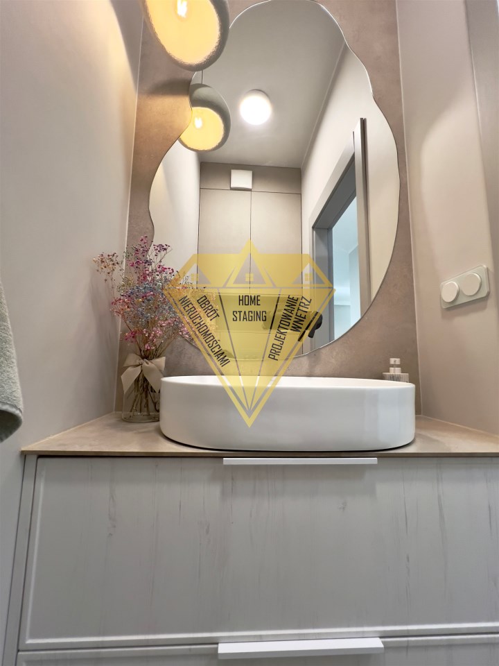 - Najwyższa jakość materiałów i wyposażenia: • blaty i fartuch kuchenny z naturalnego marmuru, wykonane przez renomowaną firmę • sprzęt AGD marek premium: • ekspres do kawy marki Bosch • piekarnik + mikrofala z funkcją grilla Samsung • zmywarka Samsung • lodówko-zamrażarka Whirlpool • lite drewno dębowe, ułożone w klasyczną jodełkę • płytki w łazienkach marki La Mania •użyte farby są marki Flugger • wysokość pomieszczeń 2,95 m, co potęguje poczucie przestrzeni - to tylko niektóre z wyjątkowych atutów tego apartamentu.