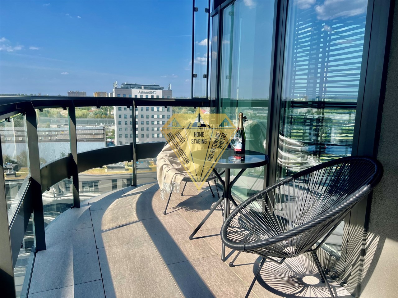- dużej, ponad 10 metrowej Loggi - ekspozycja na trzy strony świata: wschodnią, południową i zachodnią co daje poczucie dużej przestrzeni i lekkości oraz niezapomniane widoki, loggia wyposażona jest w estetyczny zestaw do odpoczynku.