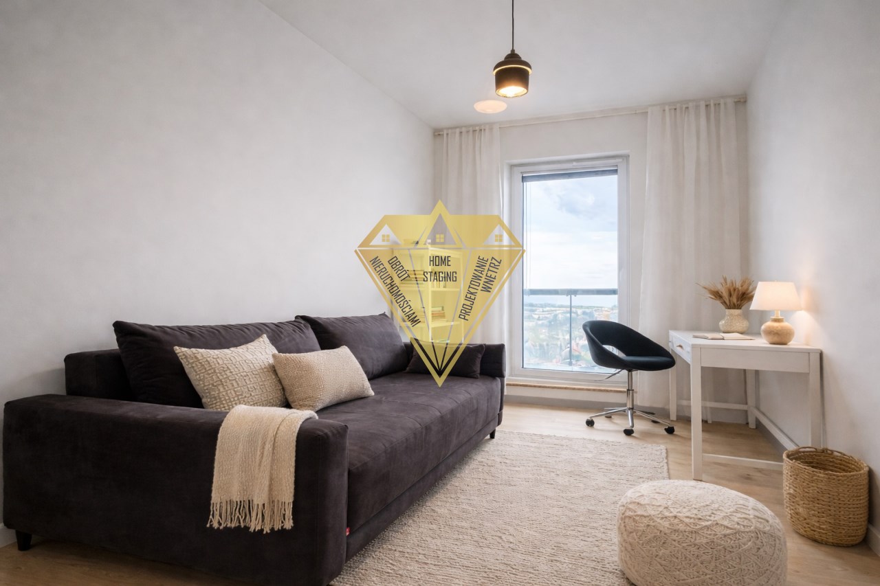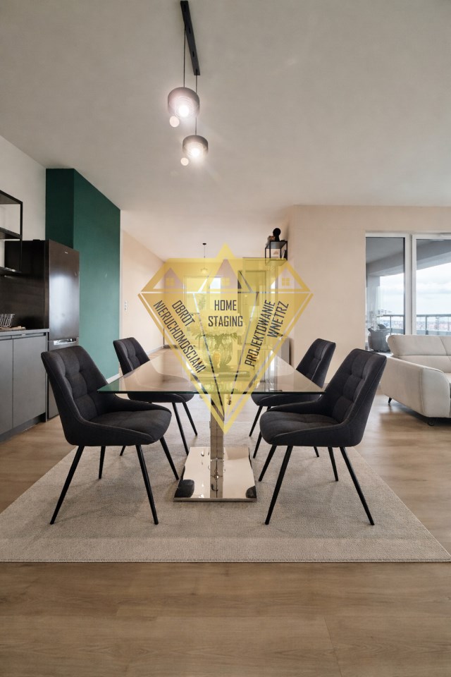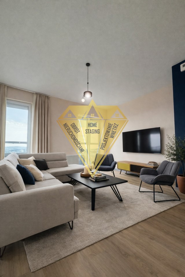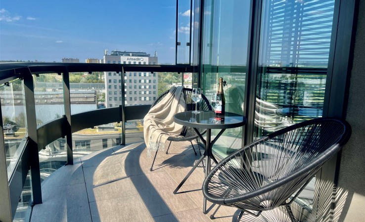 Apartament znajduje się na 15 piętrze i oferuje panoramiczny widok na całe Kielce z ekspozycją na trzy strony świata: